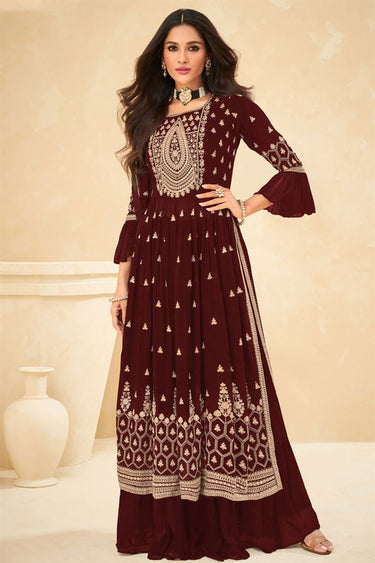Fascinating Brown Color Embroidered Palazzo Suit In Georgette Fabric