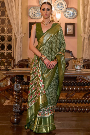Fashionable Printed Patola Silk Mehendi Green Color Saree