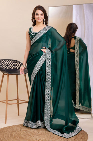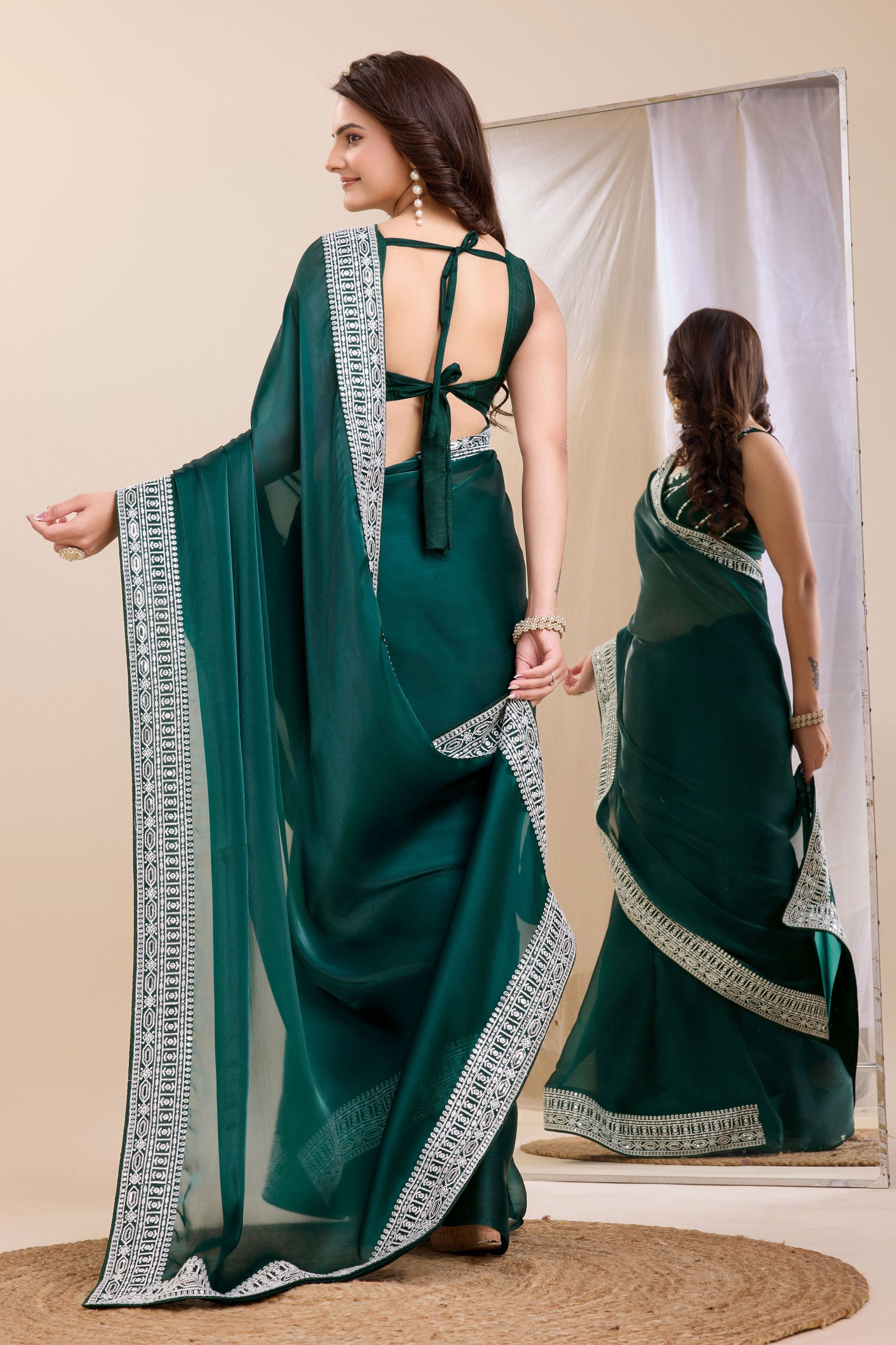 Festival Wear Enticing Border Work Teal Color Art Silk Saree