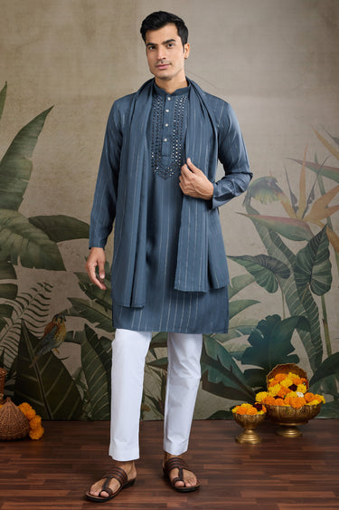 Festive Wear Blue Rayon Readymade Lovely Men Kurta With Dupatta