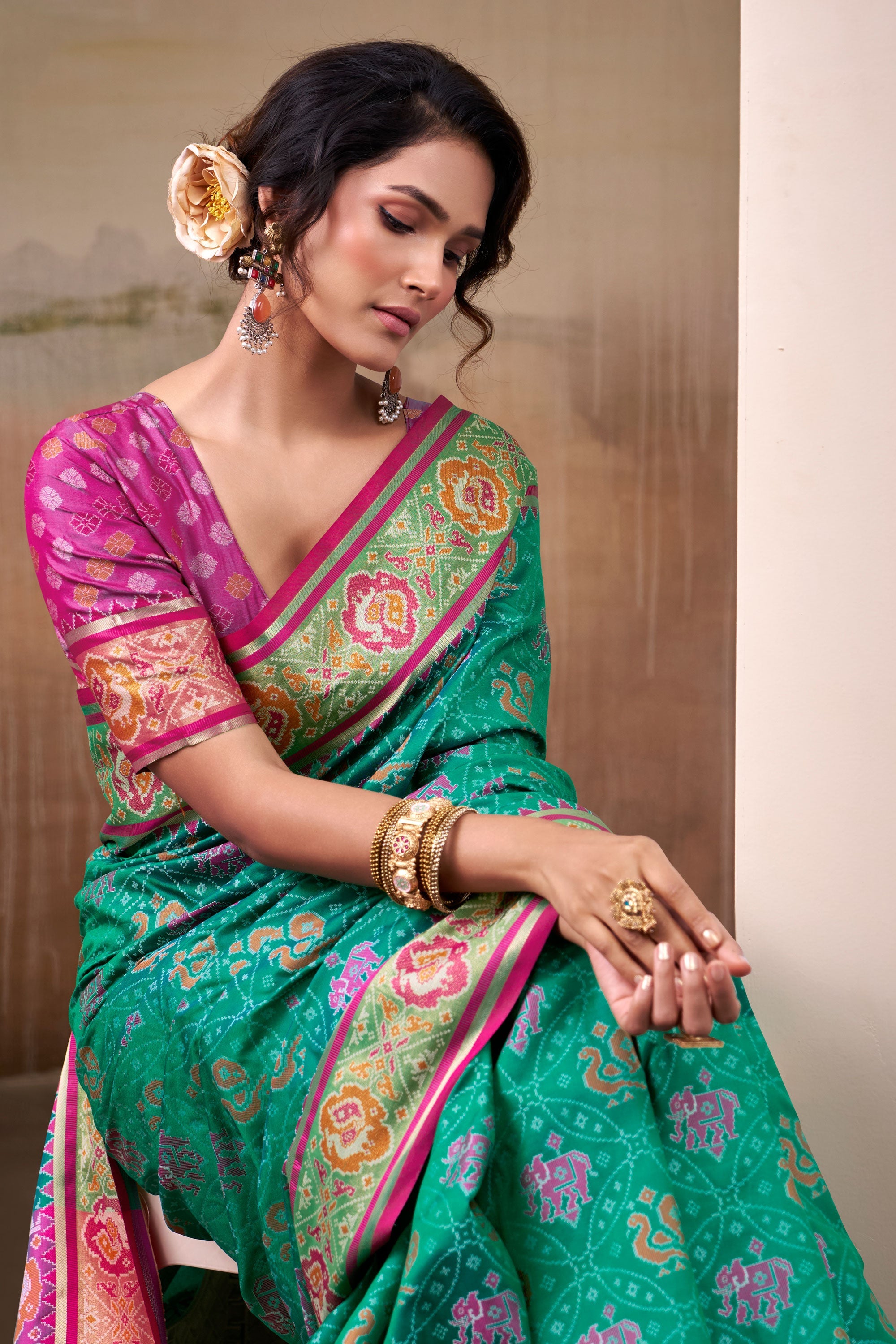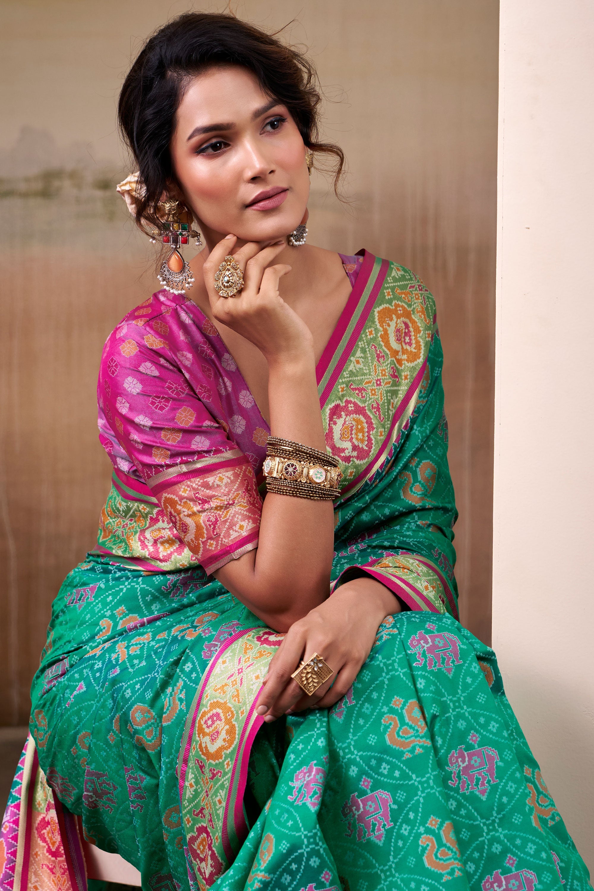 Festive Wear Captivating Sea Green Color Patola Silk Saree