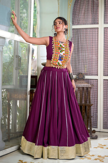 Festive Wear Wine Color Readymade Lovely Lehenga In Rayon Fabric