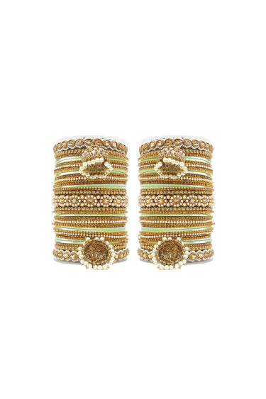 Function Special Alloy Material Bangle Set With Kundan Jhumki in Sea Green Color