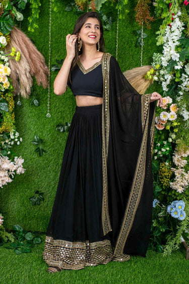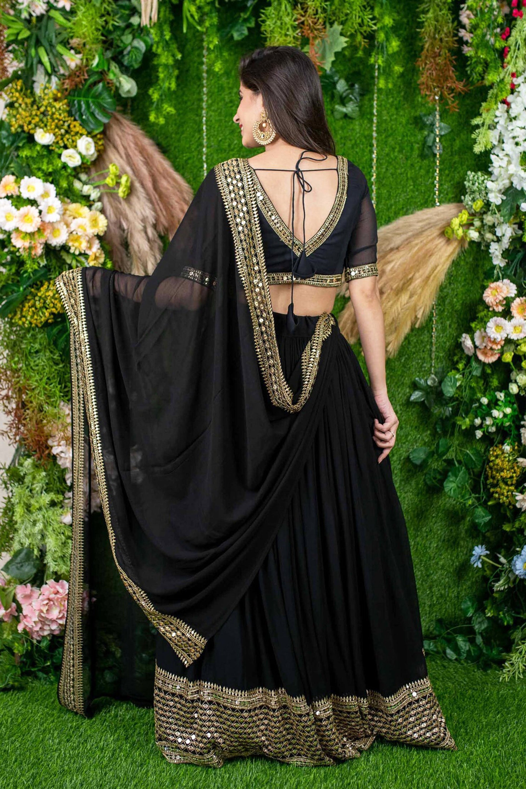 Georgette Black Sangeet Wear 3 Piece Sequins Work Lehenga With Enigmatic Blouse