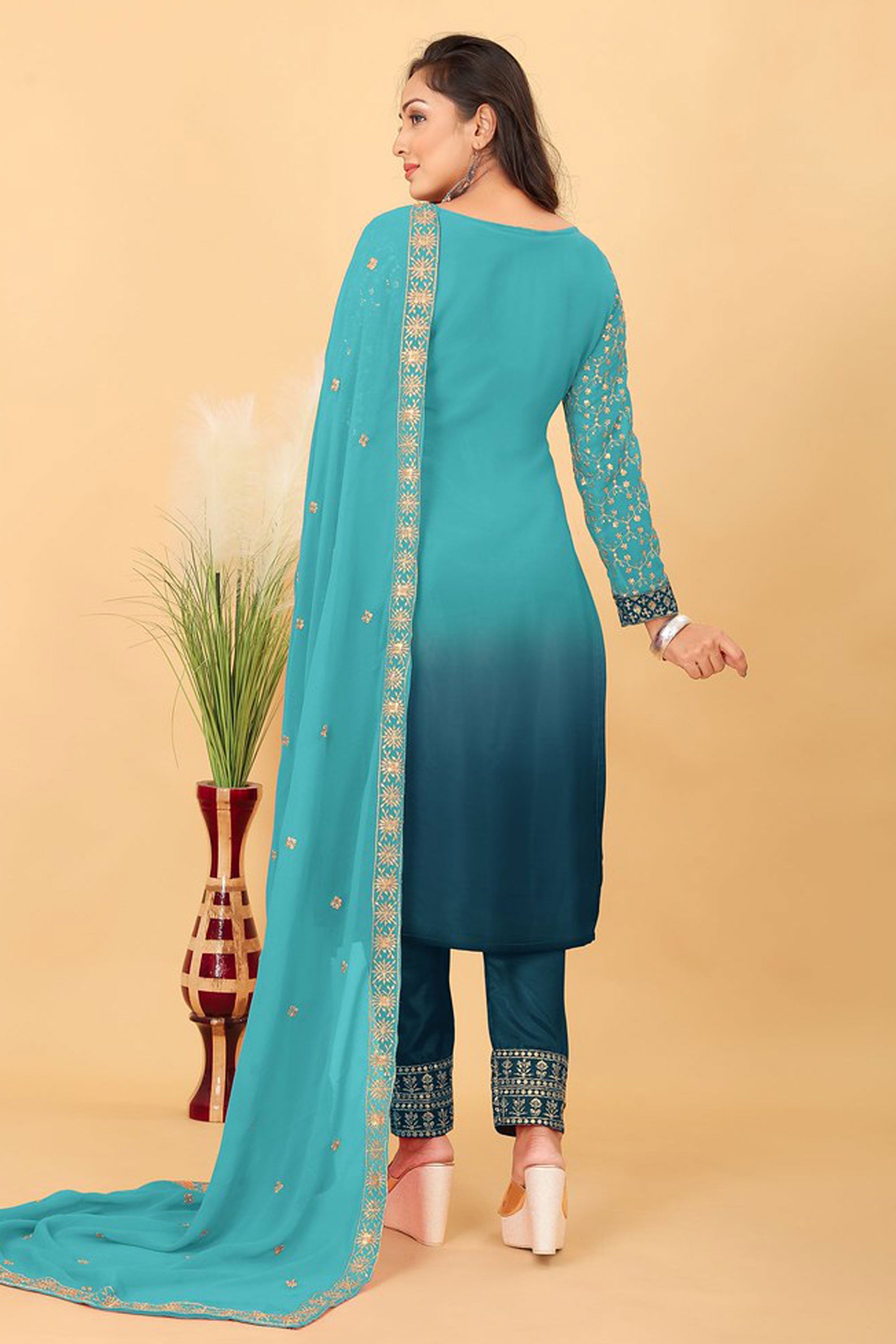 Discover effortless elegance with our Embroidered Georgette Readymade Straight Cut Salwar Suit. Designed with premium-quality georgette fabric, this outfit offers a flowy yet structured fit that enhances your silhouette. The intricate embroidery adds a touch of sophistication, making it perfect for weddings, parties, or festive celebrations. With a modern straight-cut design, this ready-to-wear ensemble ensures convenience without compromising on style. Its lightweight fabric keeps you comfortable while maintaining a graceful look throughout the day. Whether paired with statement earrings or traditional bangles, this salwar suit is a versatile addition to your wardrobe. Upgrade your collection with this timeless piece!