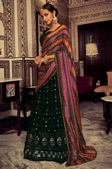 Georgette Dark Green Thread Work Lehenga Choli With Silk Dupatta