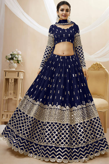Georgette Fabric Embroidered Sangeet Wear Designer Lehenga Choli In Navy Blue Color
