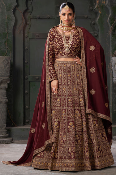 Georgette Fabric Maroon Color Beatific Look Bridal Lehenga