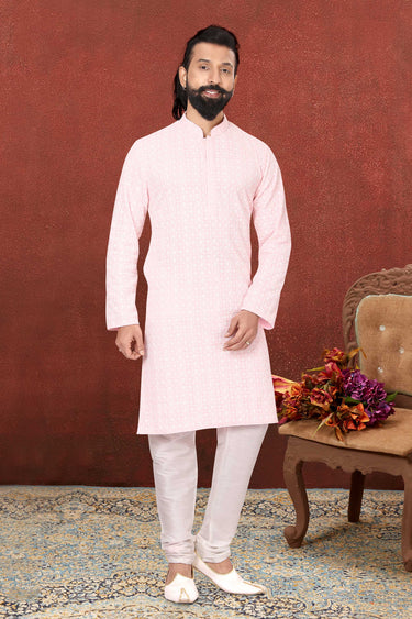Georgette Fabric Pink Color Festive Wear Readymade Lovely Kurta Pyjama For Men