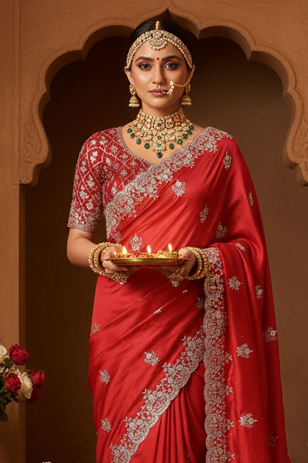 Additionally, designs, colors and patterns of actual products may slightly vary from designs shown in the image. Images are only representative. For jewellery pieces, color and texture of items shown on the website may have slight variations. This happens because of photography.