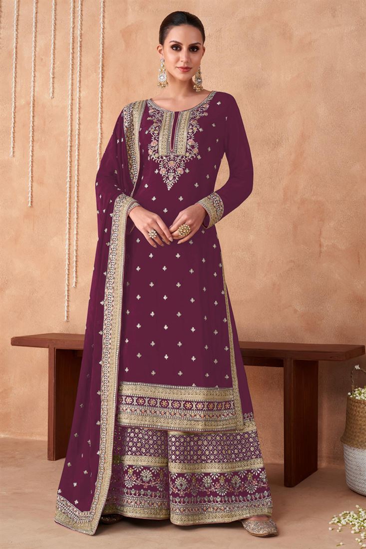 Georgette Fabric Wine Color Winsome Palazzo Suit