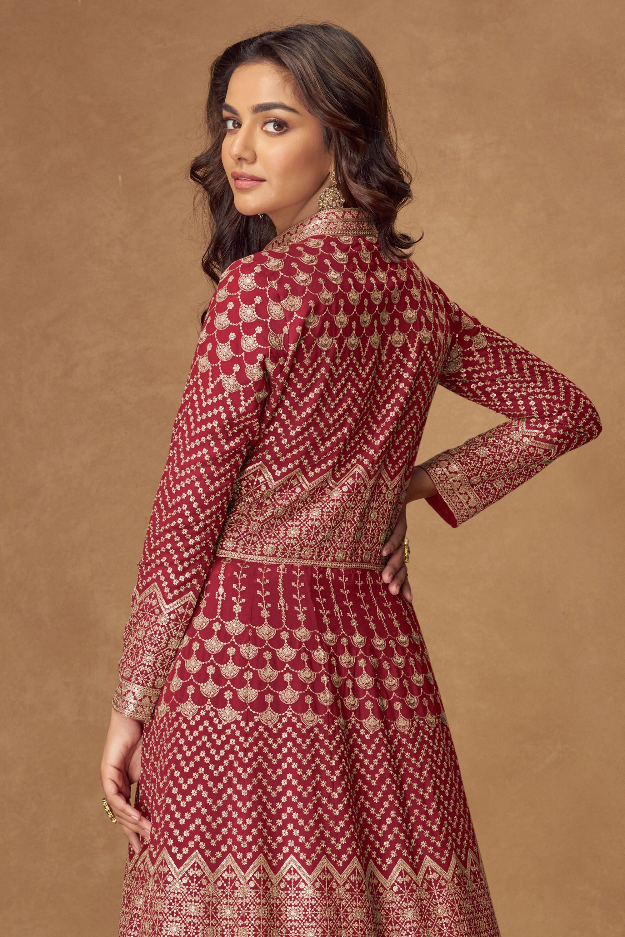 Enhance your ethnic wardrobe with the Rich Color Embroidered Georgette Designer Long Top With Skirt. Made with delicate craftsmanship, the embroidery adds a touch of refinement to the soft georgette fabric. Ideal for functions, festive gatherings, or wedding celebrations, it offers both comfort and class. Maintain its pristine beauty with dry cleaning, and please be aware of potential slight color variations.