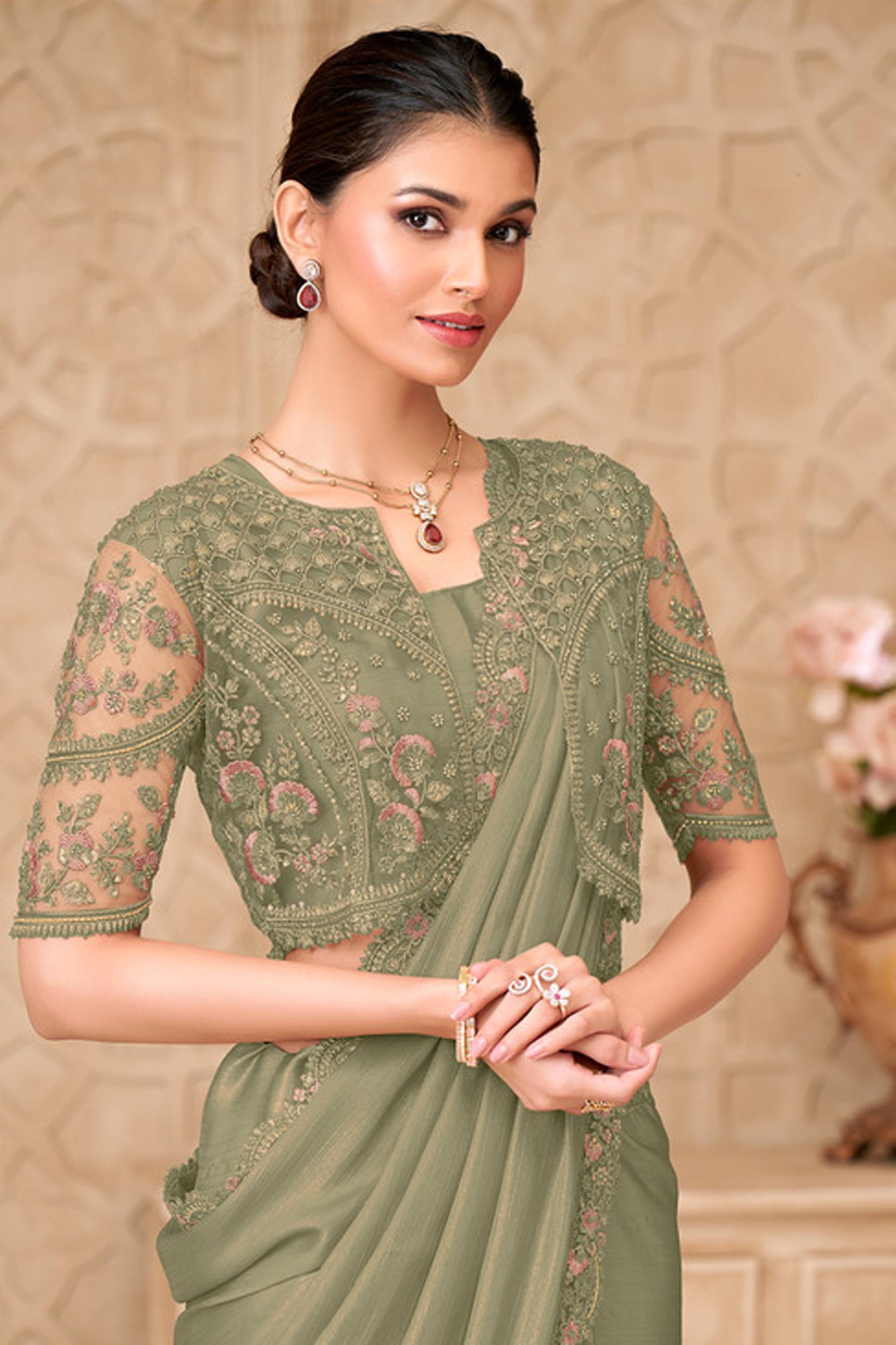 Georgette Satin Fabric Sea Green Saree For Wedding Wear
