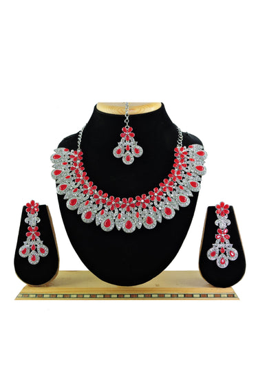 Gorgeous Alloy Necklace with Earrings and Mang Tikka In Red Color