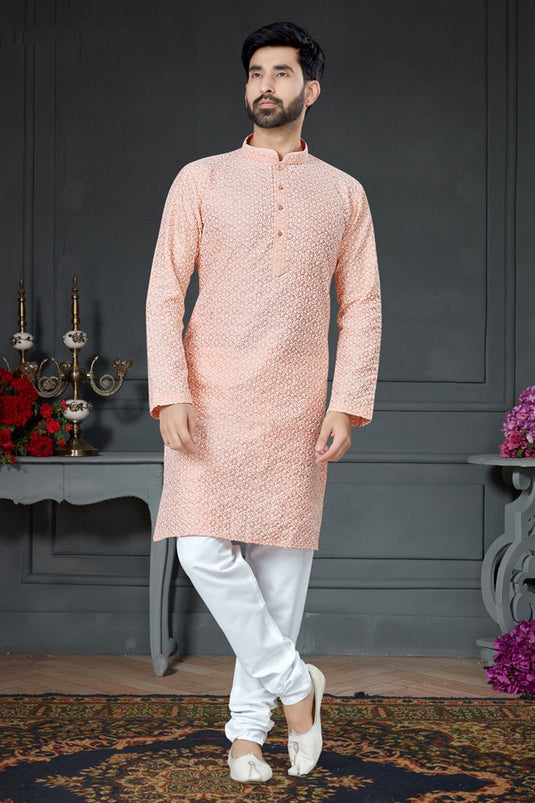 Gorgeous Cotton Silk Fabric Reception Wear Readymade Kurta Pyjama For Men