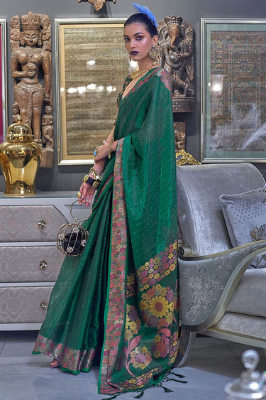 Green Color Function Look Sensational Sequins Work Organza Saree