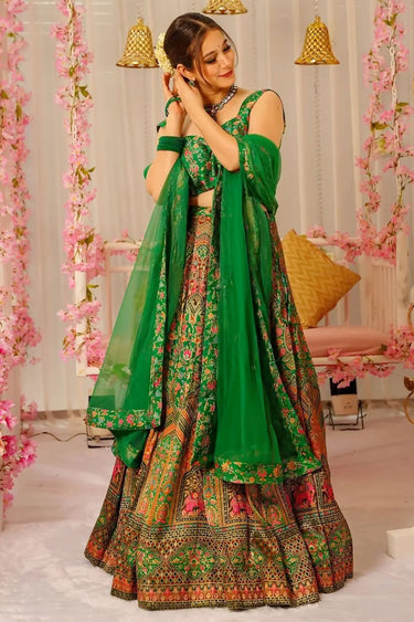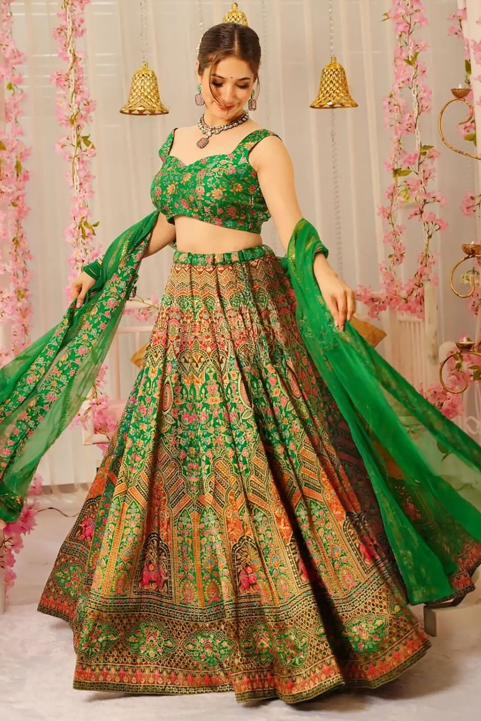 Green Designer Festive Wear Readymade Crop Top Lehenga
