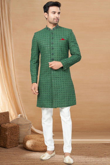 Green Fancy Fabric Trendy Readymade Indo Western For Men