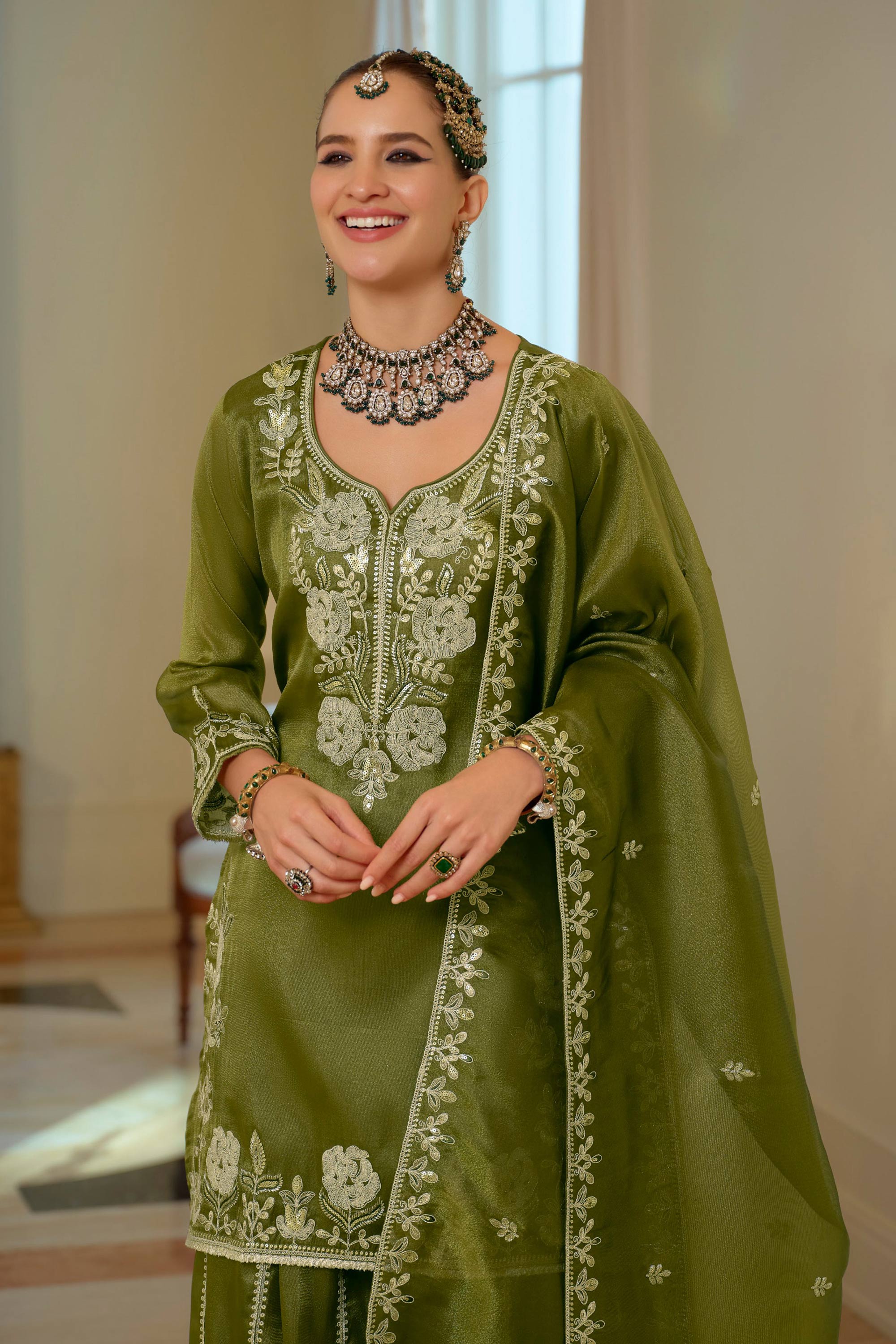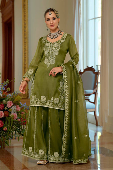 Green Festive Wear Fancy Fabric Embroidered Readymade Palazzo Suit