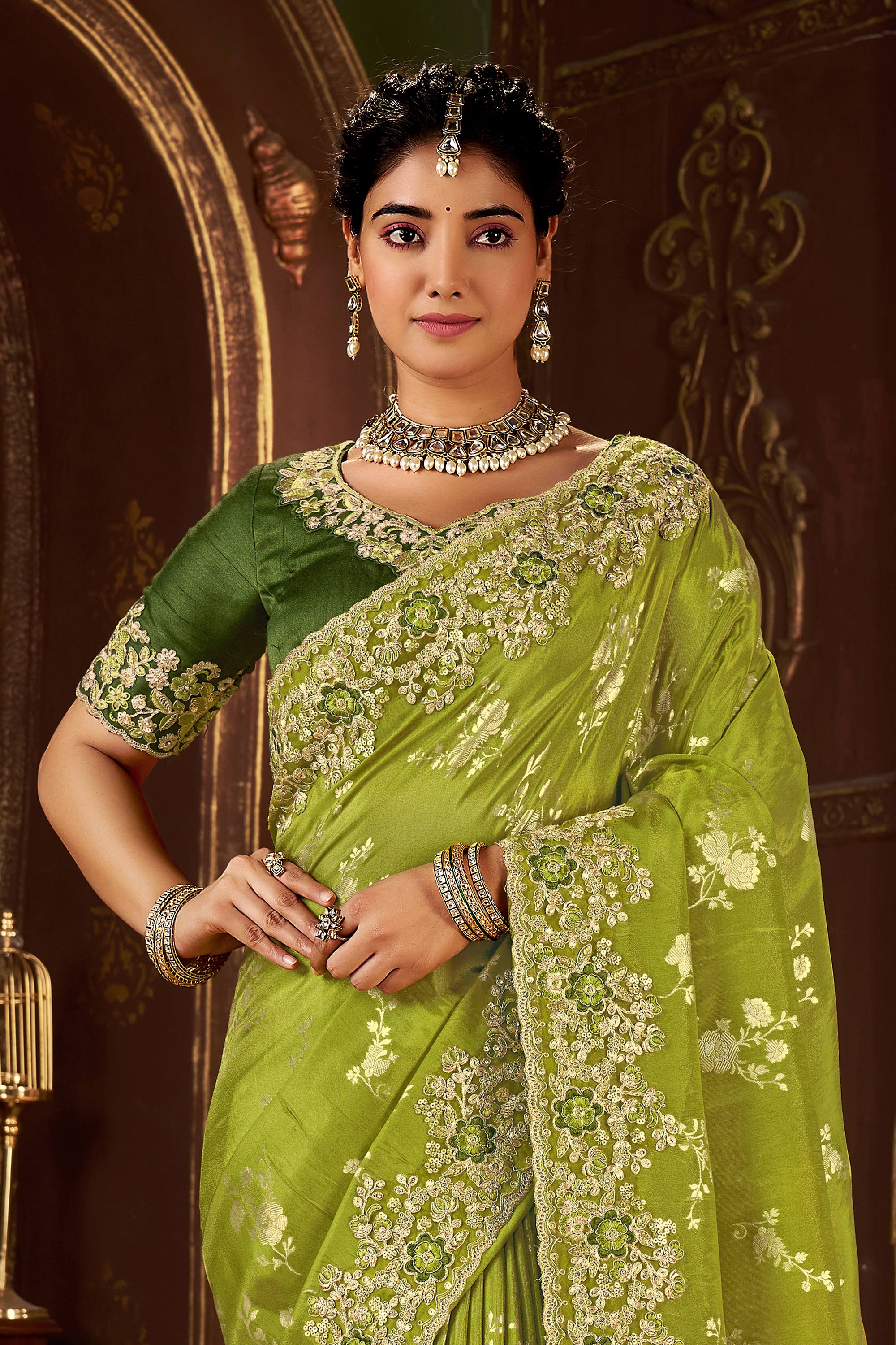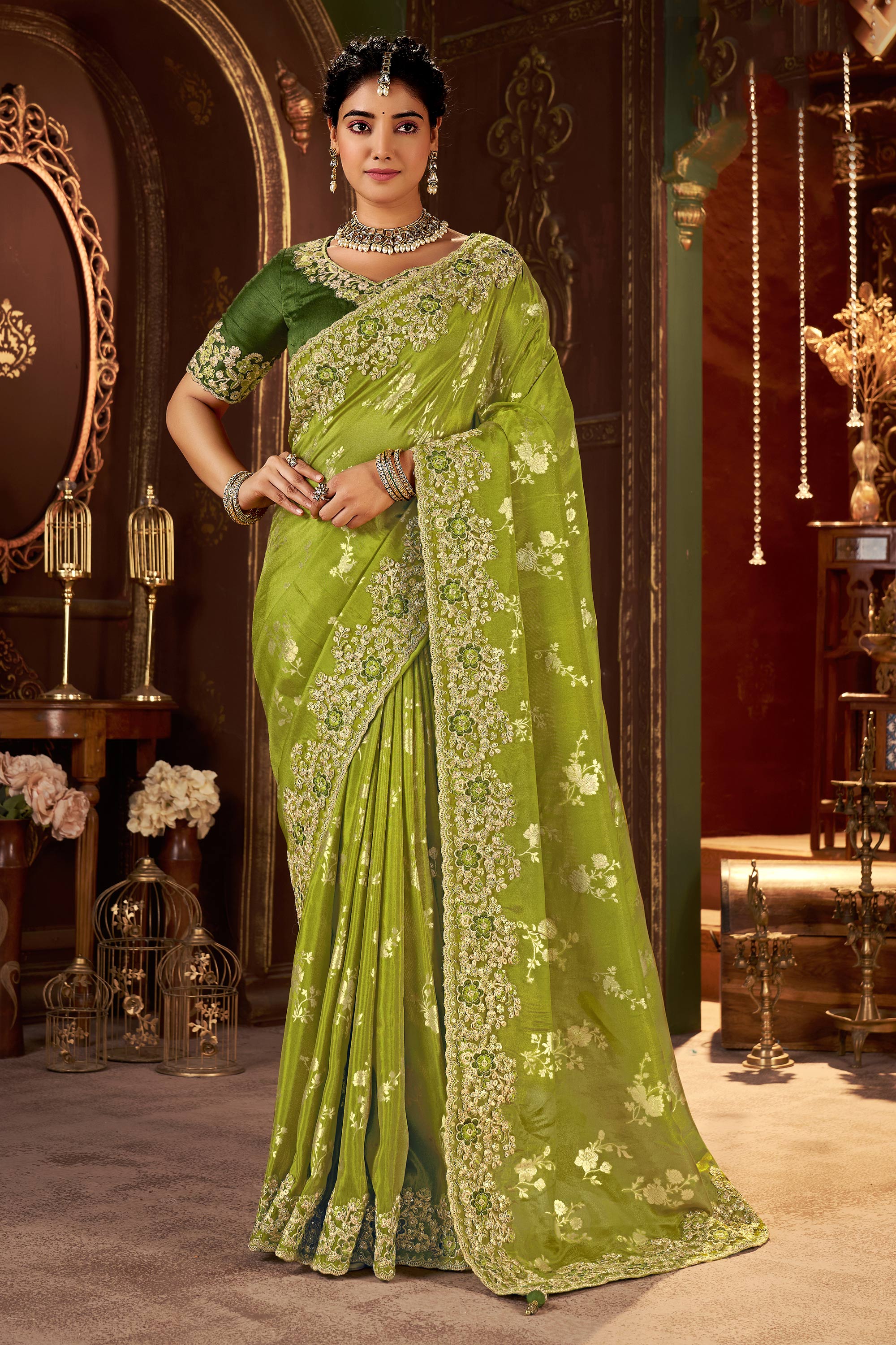 Green Sangeet Wear Art Silk Embroidered Border Work Saree