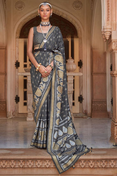 Grey Color Banarasi Style Weaving Saree In Art Silk Fabric