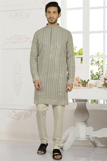 Grey Georgette Fabric Festive Wear Readymade Kurta For Men