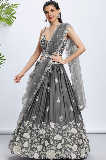 Grey Sequins Work On Georgette Sangeet Wear Lehenga With Beautiful Blouse