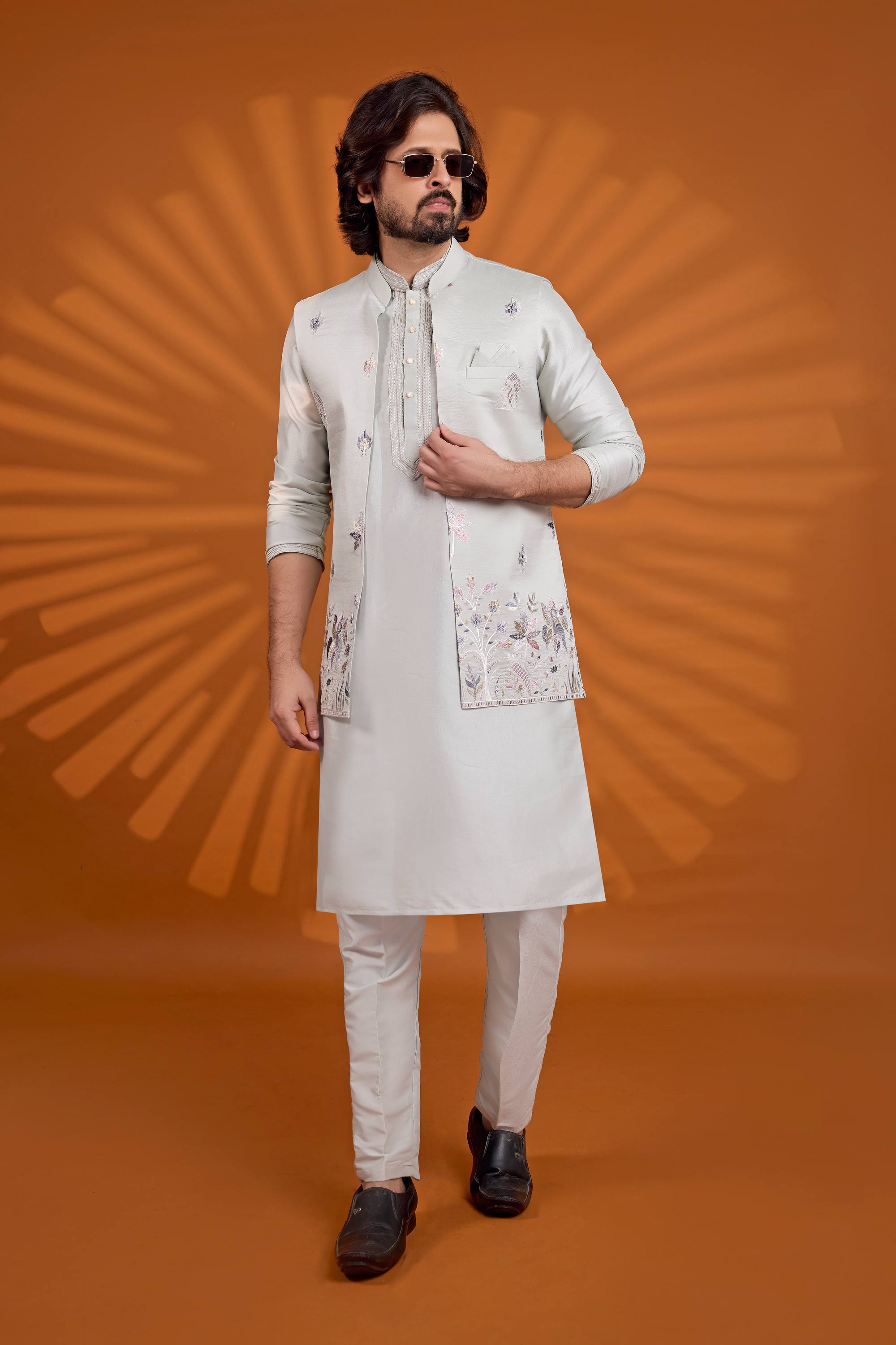 Upgrade your festive wardrobe with this elegant Pretty Reach Color Art Silk Readymade Kurta and Aligadhi Pant set, complete with an embroidered jacket. Crafted from premium art silk fabric, this ensemble offers a comfortable fit while radiating traditional charm. The intricate embroidery on the jacket adds a luxurious touch, perfect for wedding functions or celebratory events. The stylish Aligadhi pants complement the kurta's timeless appeal, making it an ideal choice for both modern and classic tastes. Enhance your style effortlessly with this all-in-one outfit that blends sophistication and comfort seamlessly.