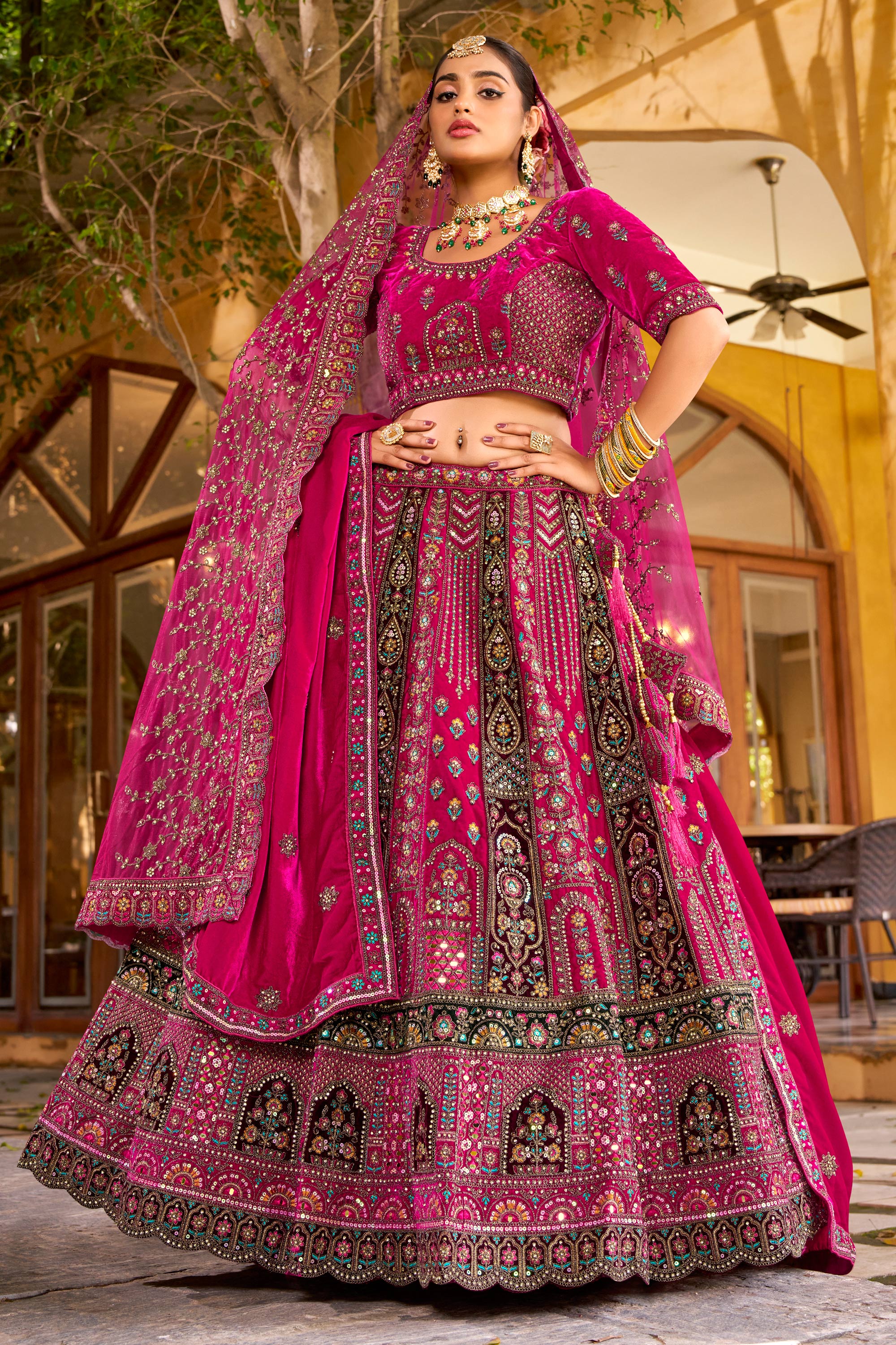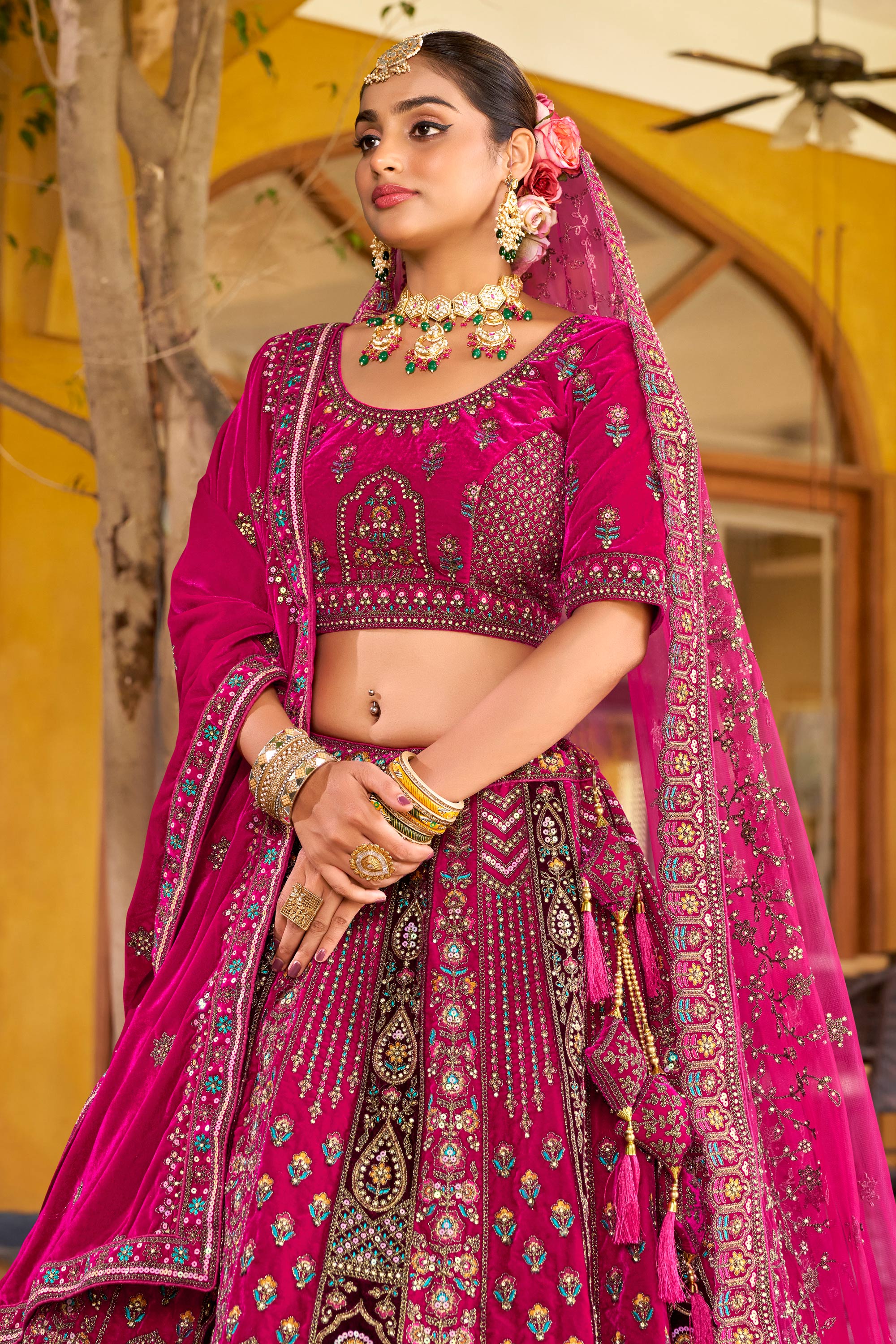 Heavy Embroidered Bridal Lehenga Set In Rani Color