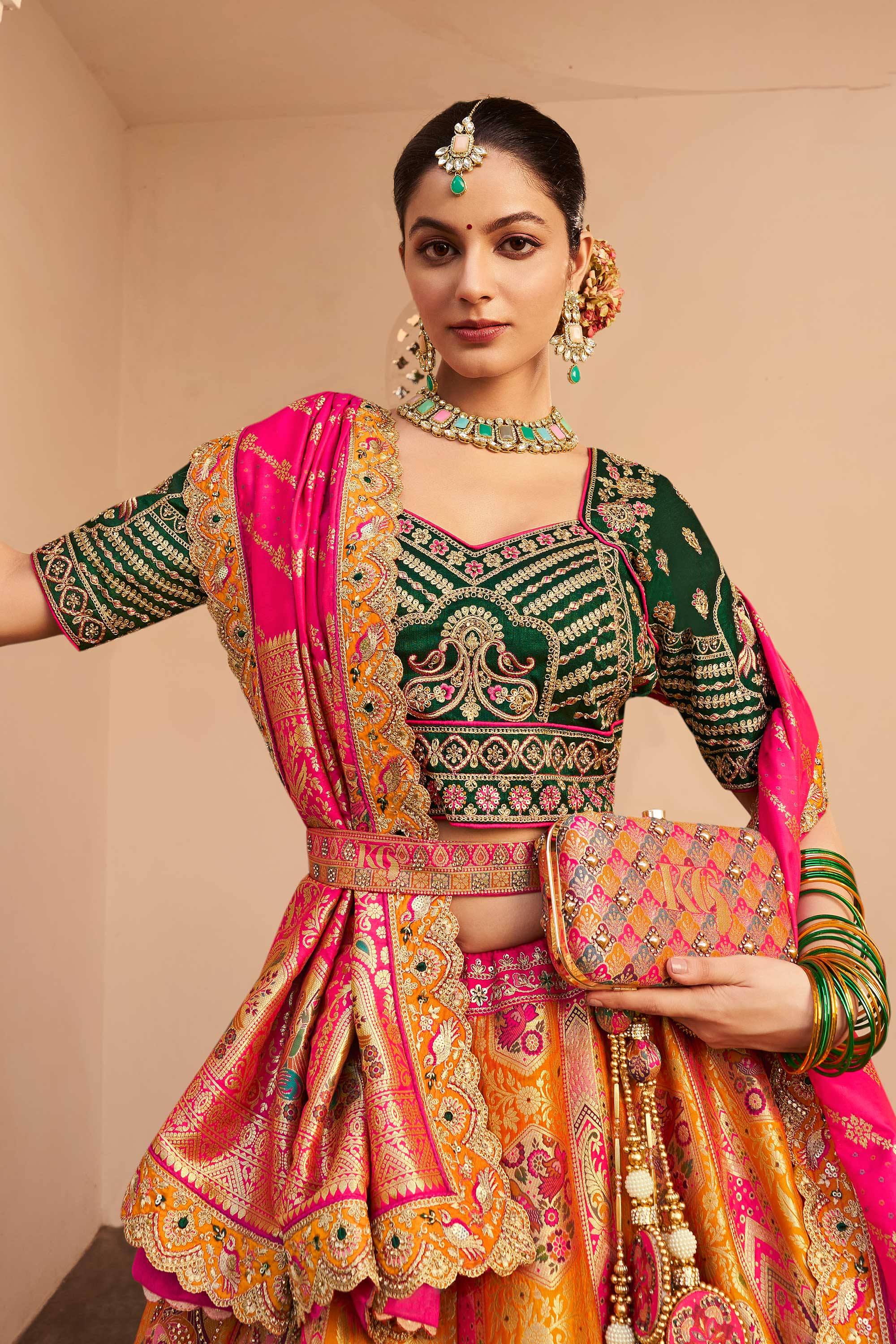 Heavy Embroidered Orange Bridal Lehenga Choli In Banarasi Silk Fabric