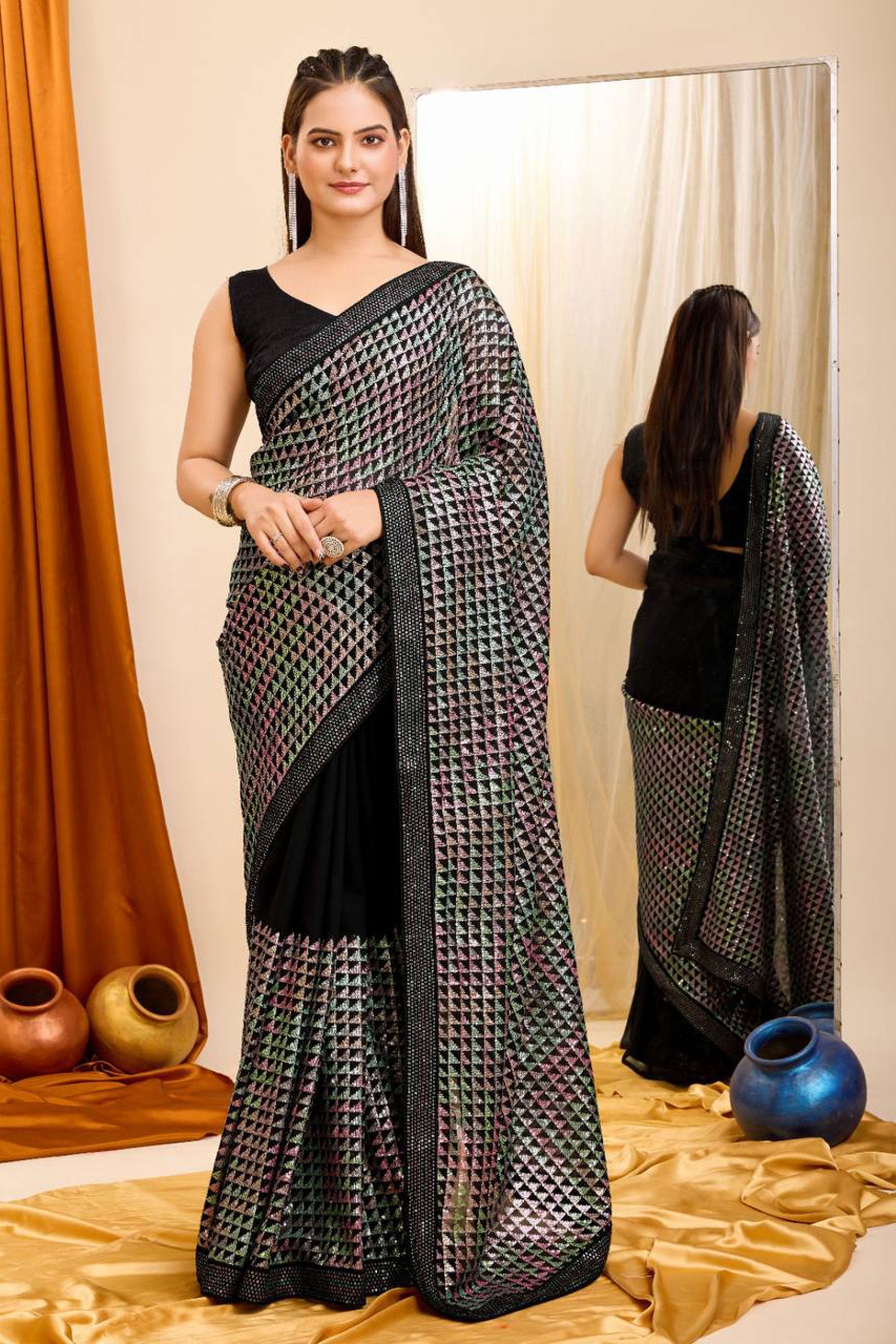 Heavy Georgette Fabric Sequins Work On Black Color Saree
