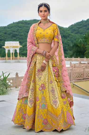 Heavy Work Silk Bridal Lehenga Choli In Yellow Color