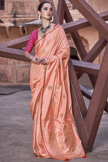 Imperial Peach Color Satin Silk Fabric Saree With Weaving Work
