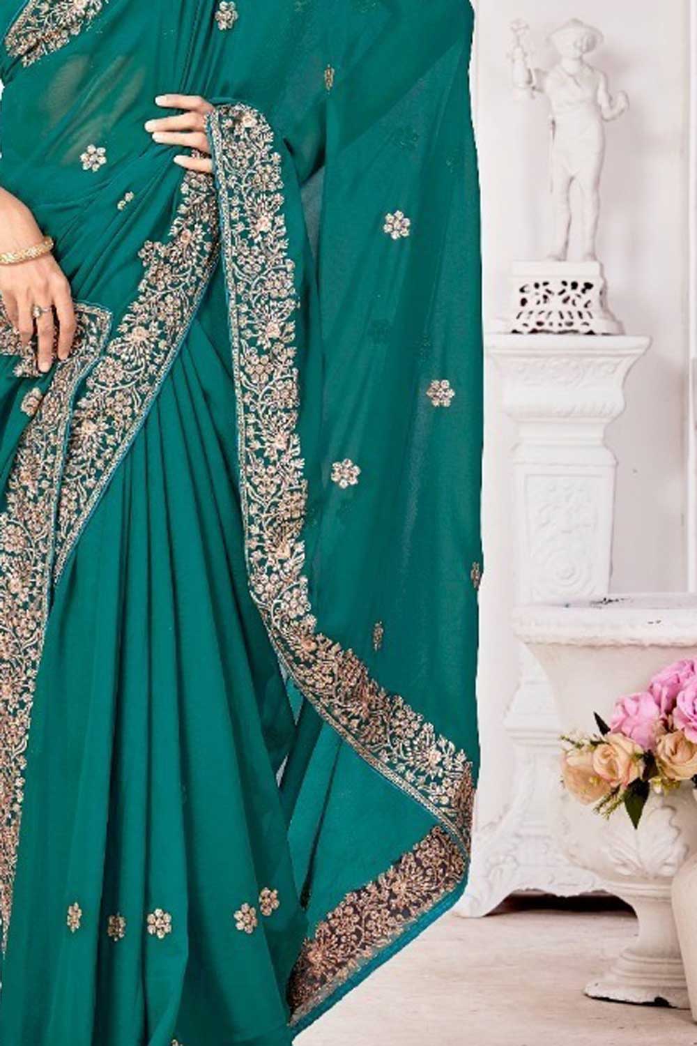 Embrace elegance with this stunning Georgette saree, designed to make every festival feel extraordinary. Crafted from lightweight Georgette fabric, the saree drapes effortlessly, offering a blend of comfort and style. The blouse, also in matching Georgette, complements the saree’s flowing texture, making it a harmonious ensemble. Delicate border work adds a refined charm, elevating the saree with a hint of traditional appeal. Ideal for festive occasions, it captures the essence of timeless beauty and modern grace.Please Note: Colors may vary slightly due to digital imaging. Accessories shown are for display purposes only.