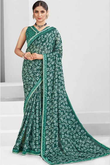 Incredible Dark Green Color Georgette Printed Saree