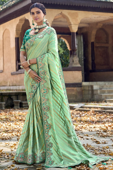 Incredible Silk Sea Green Color Saree With Heavy Embroidered Blouse