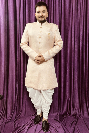 Jacquard Fabric Pink Color Wedding Wear Readymade Men Stylish Peshawari Style Indo Western