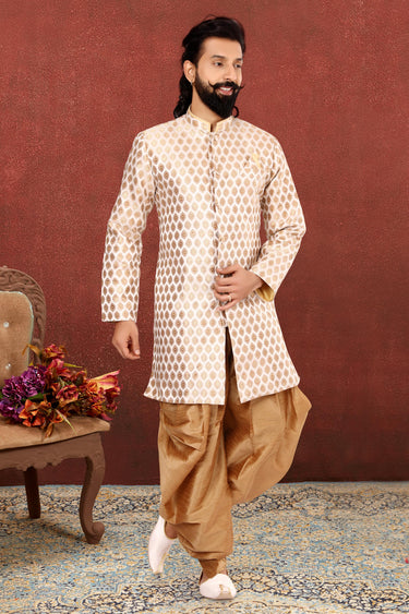 Jacquard Silk Beige Color Wedding Wear Readymade Designer Men Indo Western