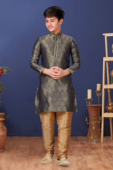 Jacquard Silk Fabric Grey Color Function Wear Boys Readymade Kurta Pyjama