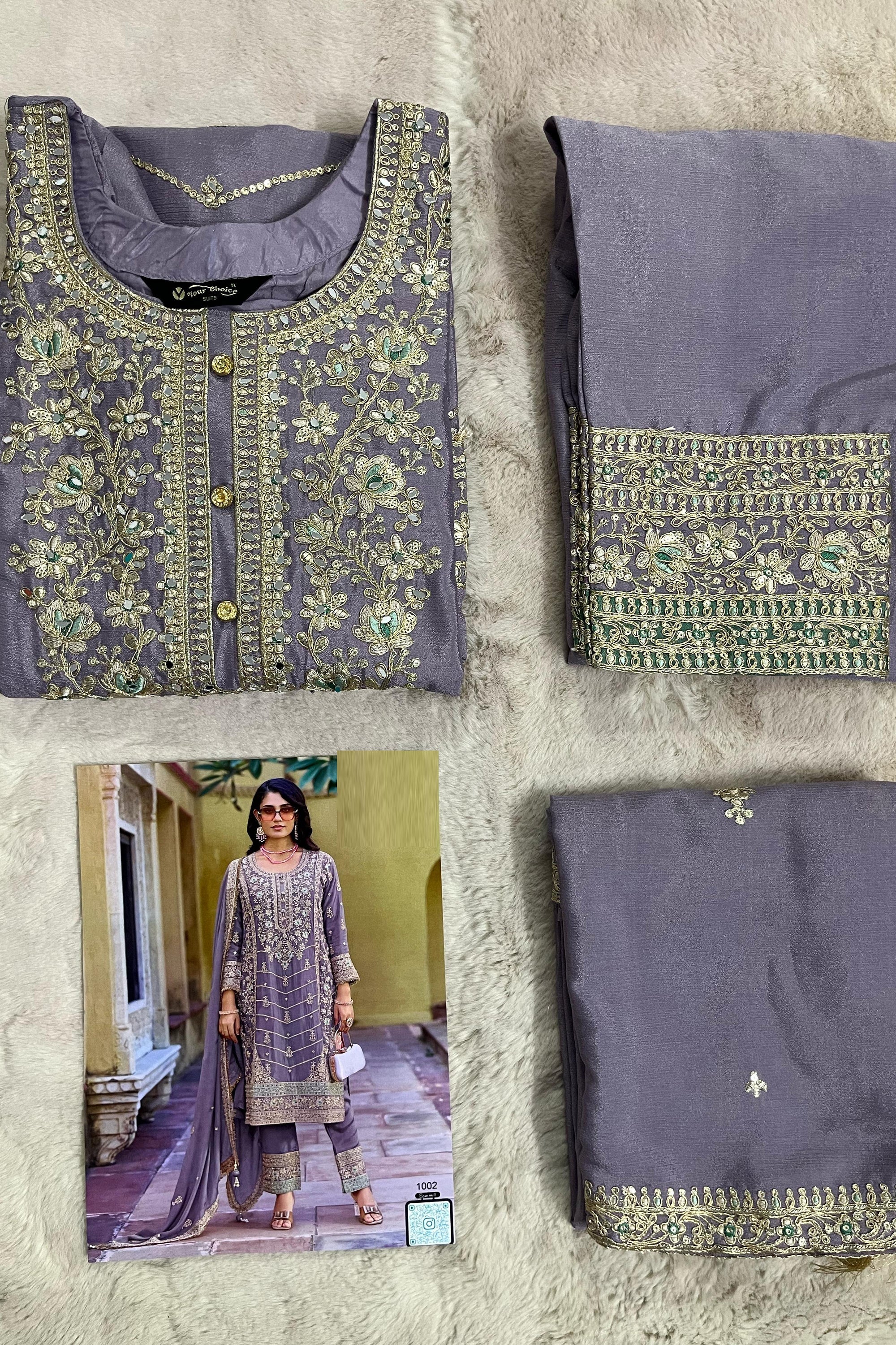 Upgrade your wardrobe with this elegant Lavender Color Chinon Readymade Straight Cut Salwar Kameez. Designed for modern women who appreciate both style and comfort, this outfit is perfect for any occasion. The straight cut enhances your silhouette while providing ease of movement. The high-quality Chinon fabric ensures durability and a luxurious feel against your skin. This ready-made suit includes intricate embroidery and a complementary dupatta to complete the look. Wear it to family gatherings, festive occasions, or casual outings for a graceful appearance that never goes unnoticed. Elevate your style quotient with this versatile and stylish ensemble.