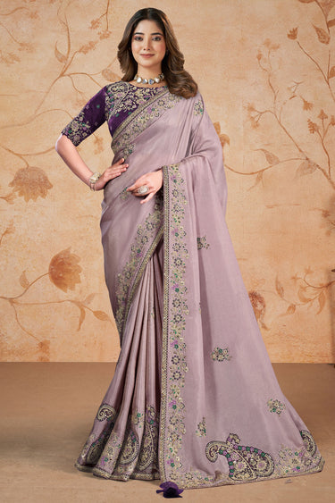 Lavender Party Wear Georgette Silk Embroidered Border Work Saree