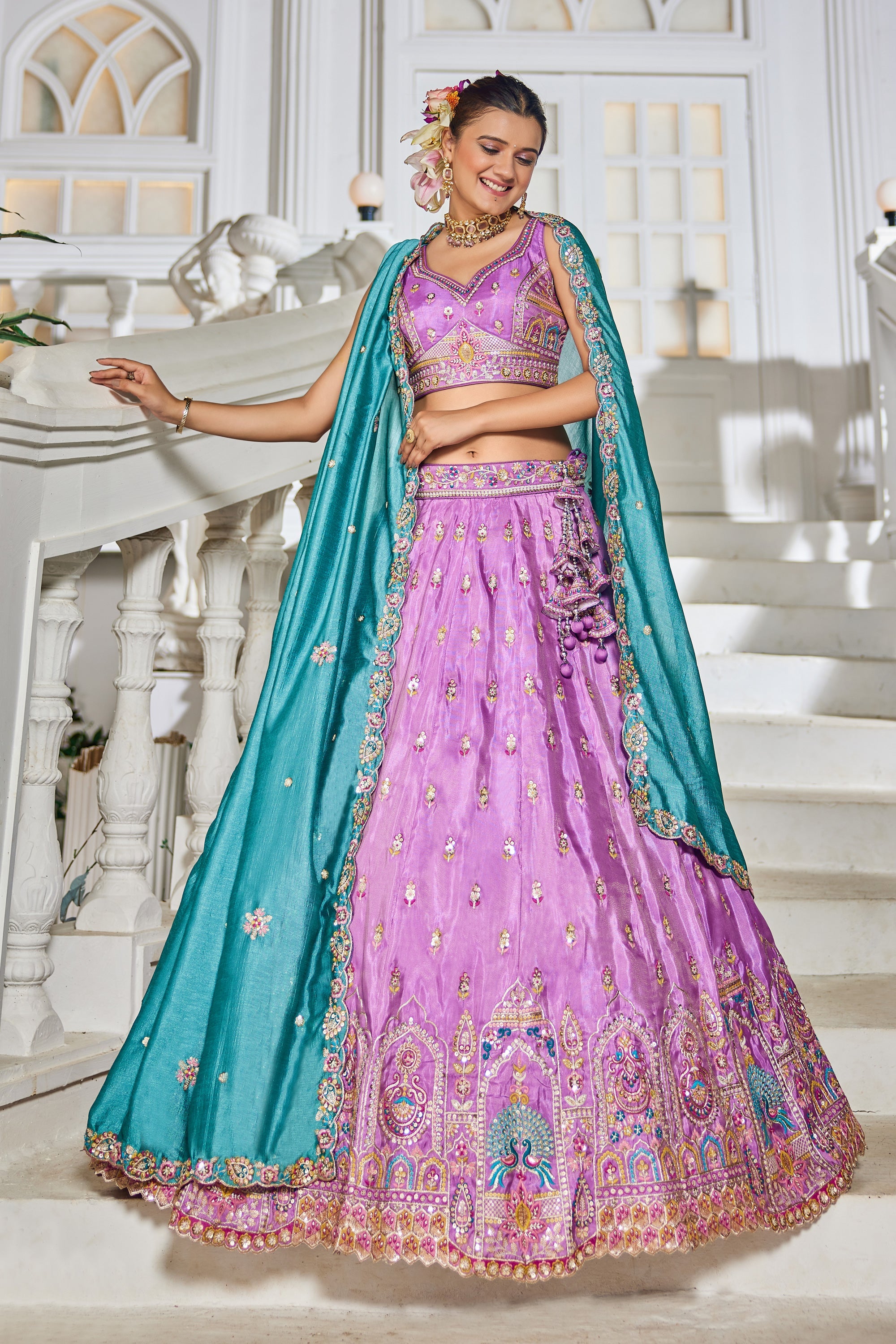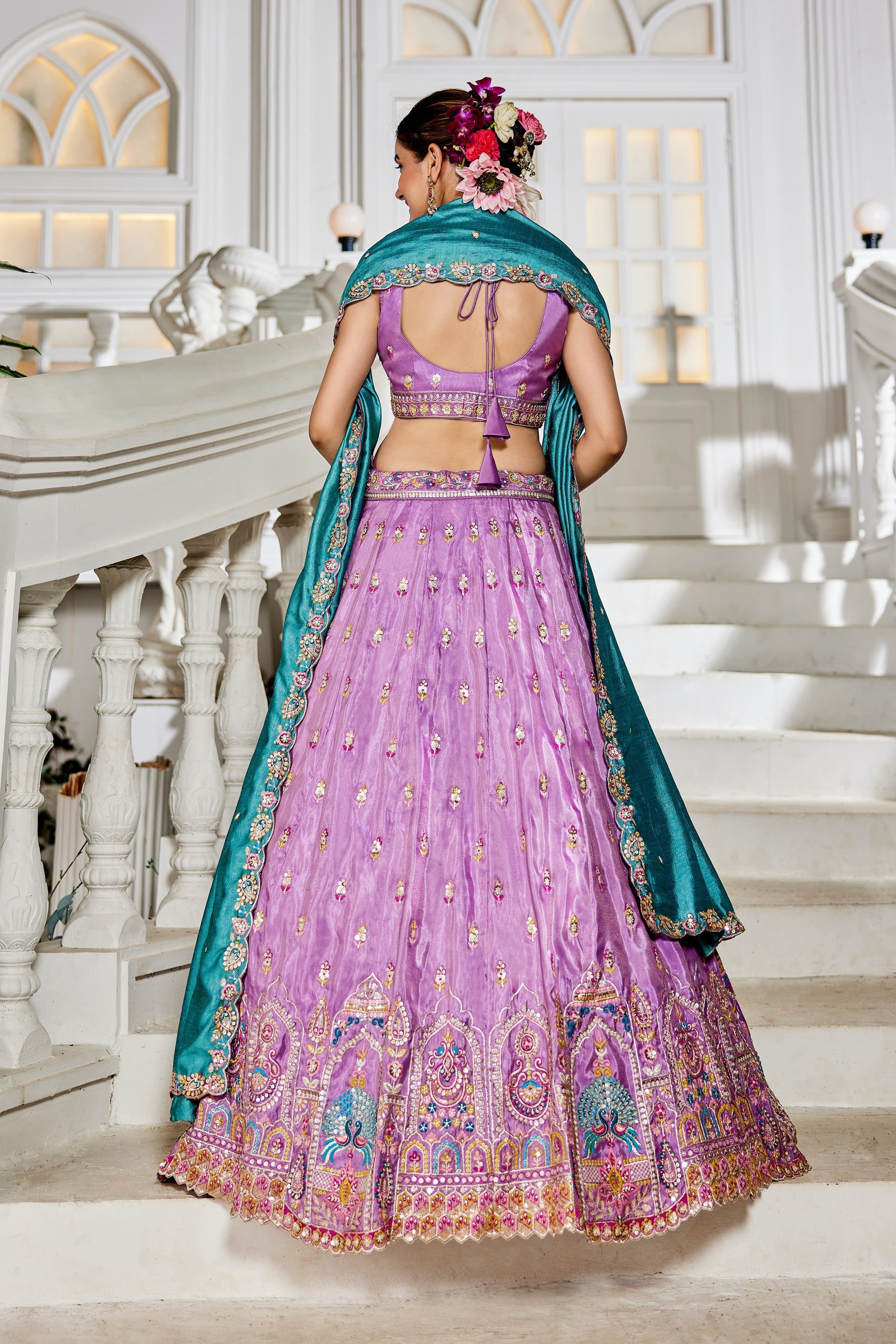 Lavender Pure Tissue Heavy Embroidered Bridal Lehenga Choli