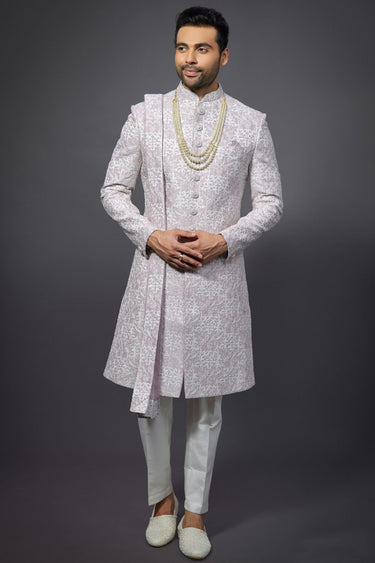 Lavender Silk Fabric Graceful Readymade Men Groom Sherwani For Wedding Wear