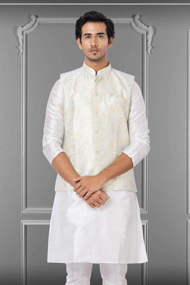 Linen Silk Lovely White Festive Wear Readymade Jacket For Men