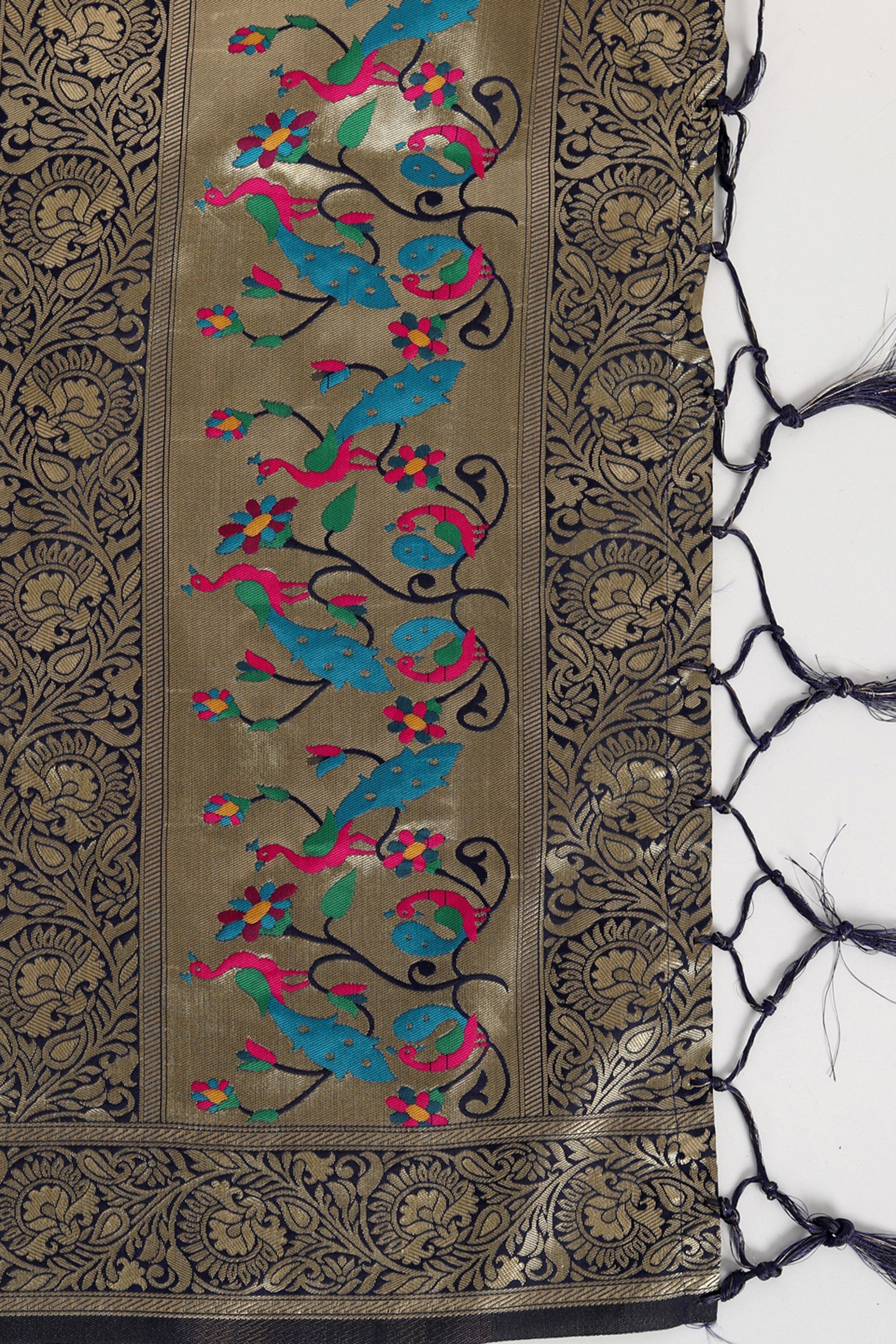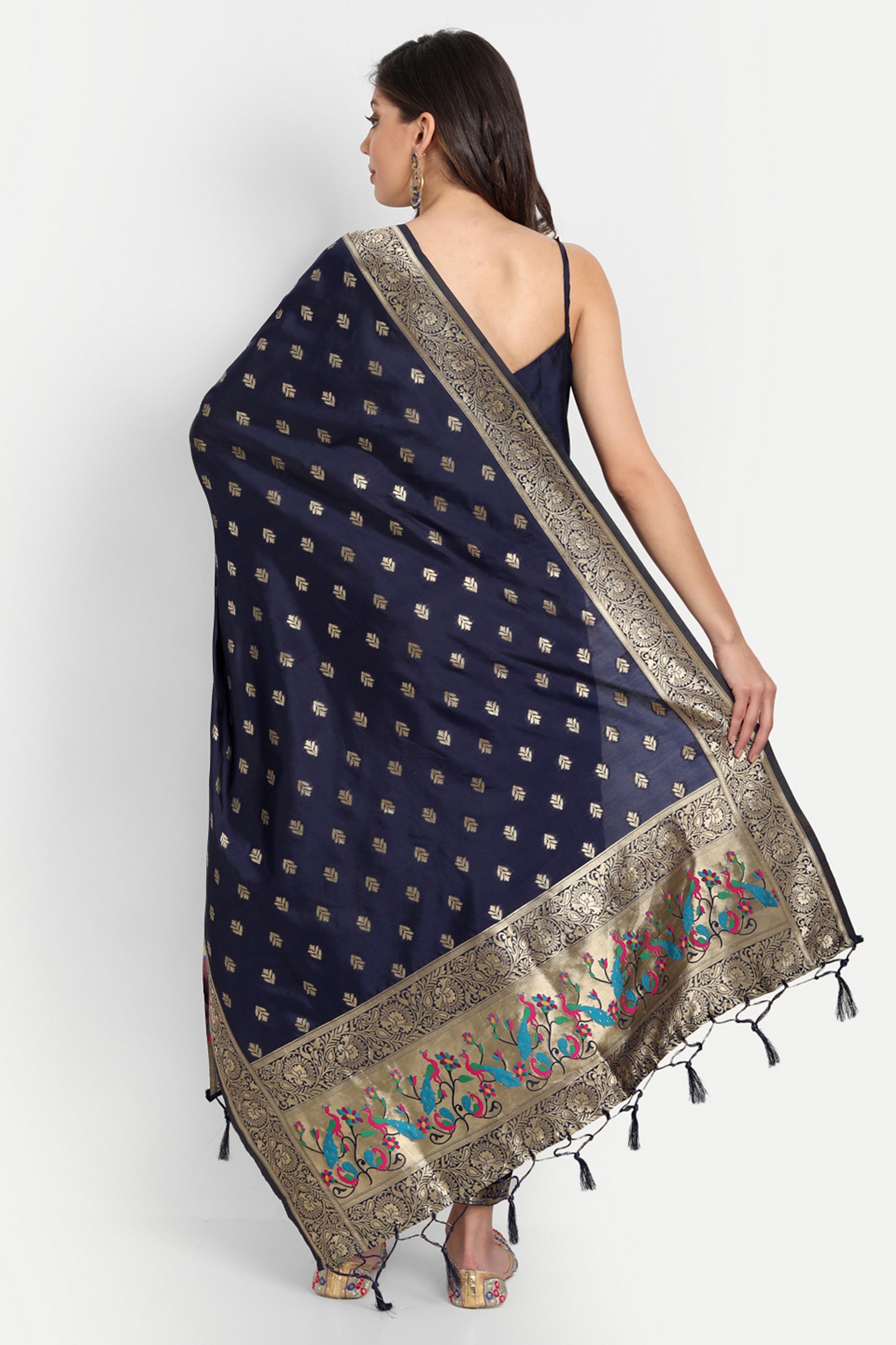 Lovely Navy Blue Weaving Work Salwar Kameez With Banarasi Silk Dupatta