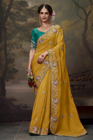 Luxurious Mustard Silk Fabric Saree