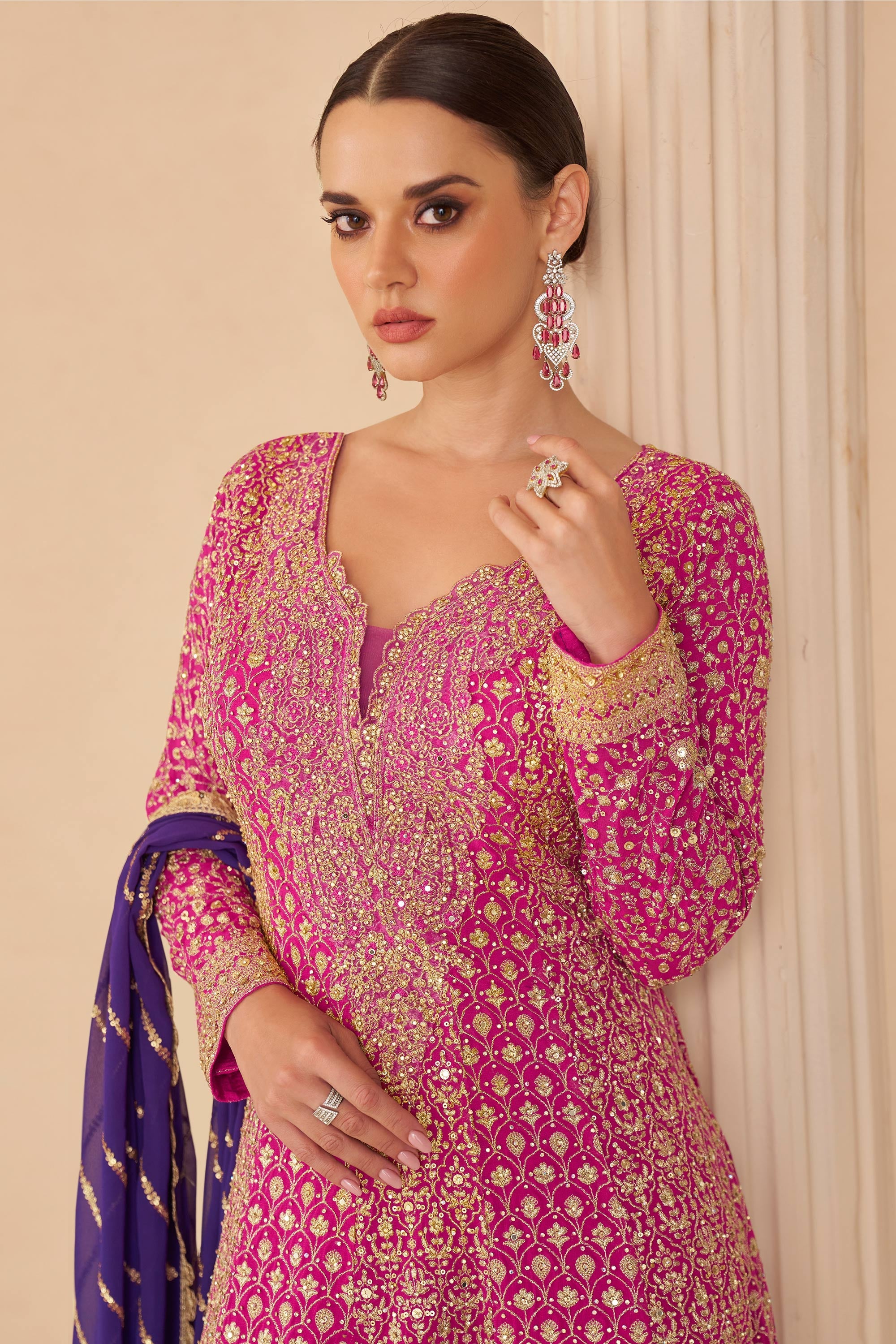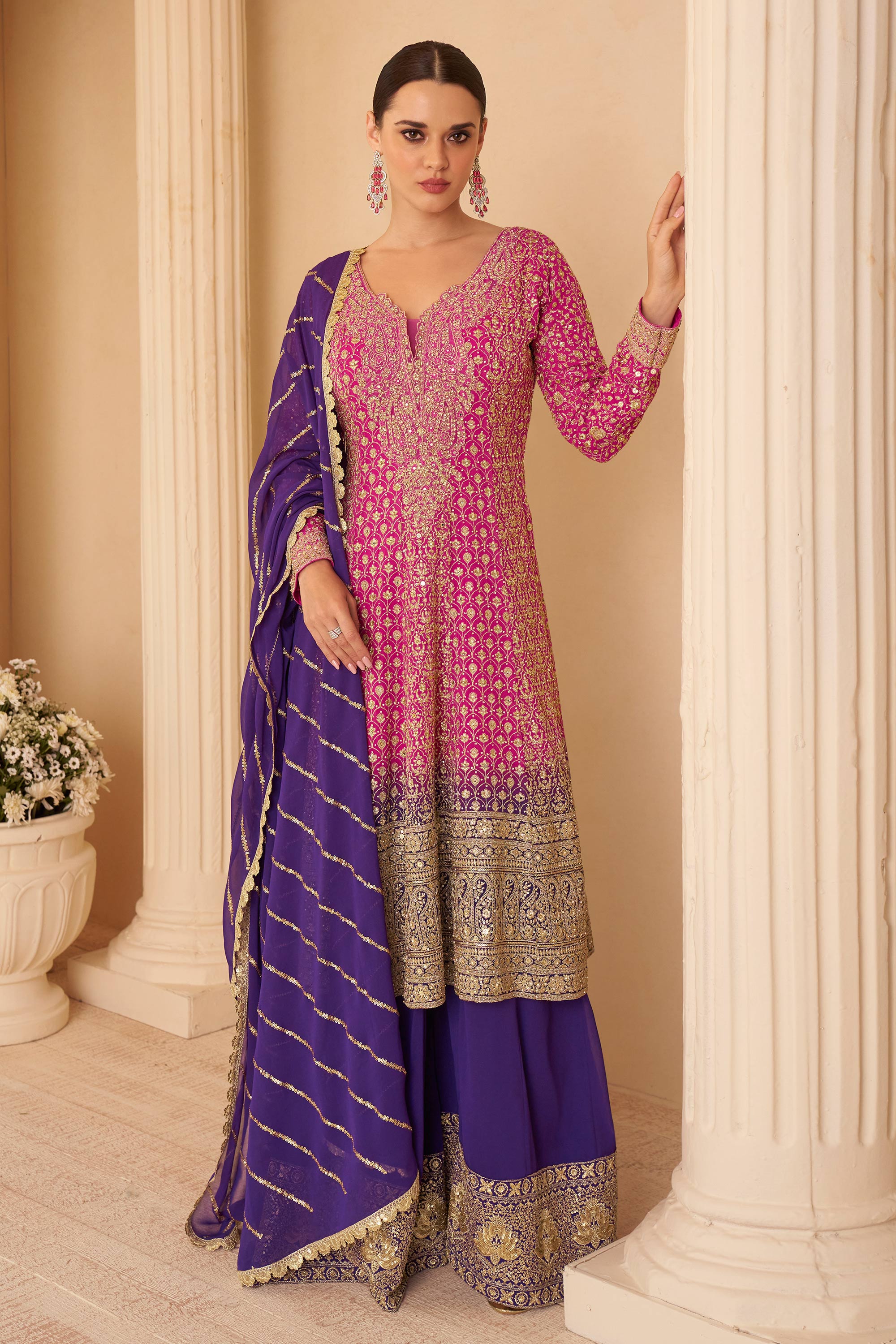 Magenta Georgette Embroidered Readymade Palazzo Salwar Kameez