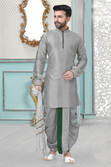 Majestic Grey Color Art Silk Fabric Festive Wear Readymade Dhoti Style Kurta For Men