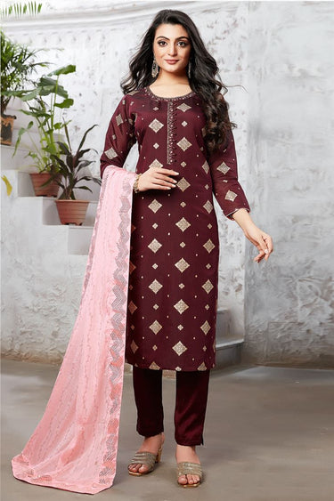 Maroon Color Parity Art Silk Function Wear Salwar Suit