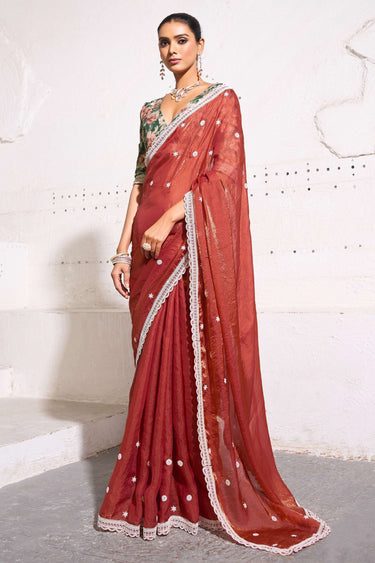 Enhance your elegance with our Reach Color Lace Work Party Wear Saree. Perfect for any festive occasion, this saree is crafted with detailed lacework that adds a touch of sophistication to your attire. The accompanying printed blouse features an intricate design that complements the saree beautifully. Whether it's a wedding, party, or family gathering, this ensemble ensures you look your best. Made from high-quality fabric, it's comfortable and easy to drape. Elevate your ethnic wardrobe with this stunning piece.